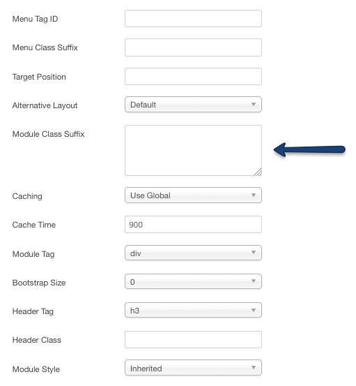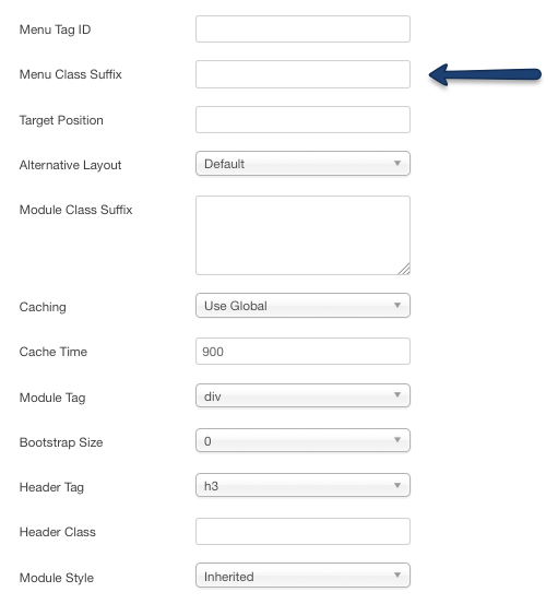 Menus can be styled with the use of a Menu Class Suffix added to the menu module's parameters as seen below: